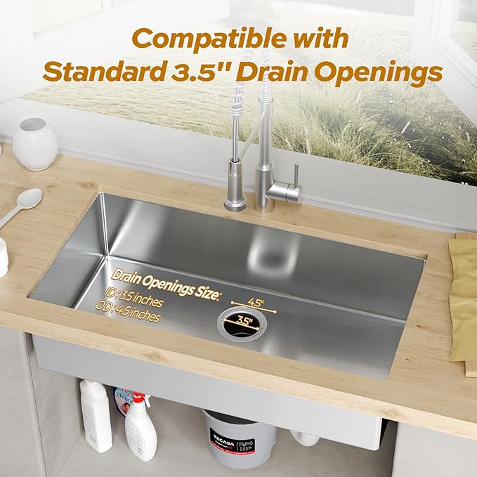 - ππππππ ππππππππππππ: The sink disposal features an exquisite exterior design that fits most existing EZ mounting assemblies, making it easy and fast to install or replace. It's compatible with other popular brands. TECASA garbage disposal is suitable for most home kitchens for standard 3-1/2 inch sink opening hole. A pre-installed 39" power cord for electricity connection.