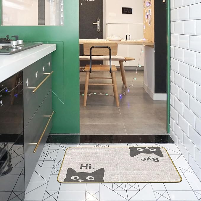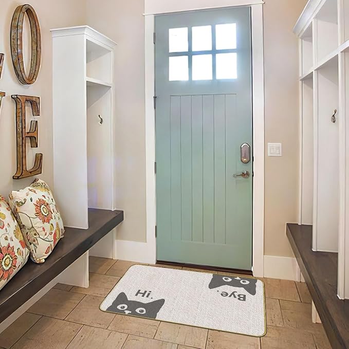 Mingnei Hi Bye Cat Welcome Doormat Door Mat for Home Kitchen Entrance,Cat Door Mat,Funny Black Lover Floor Mats for House Front Indoor Inside Outdoor Outside Entryway Rug 30x17 Welcome Mat (Color-2)