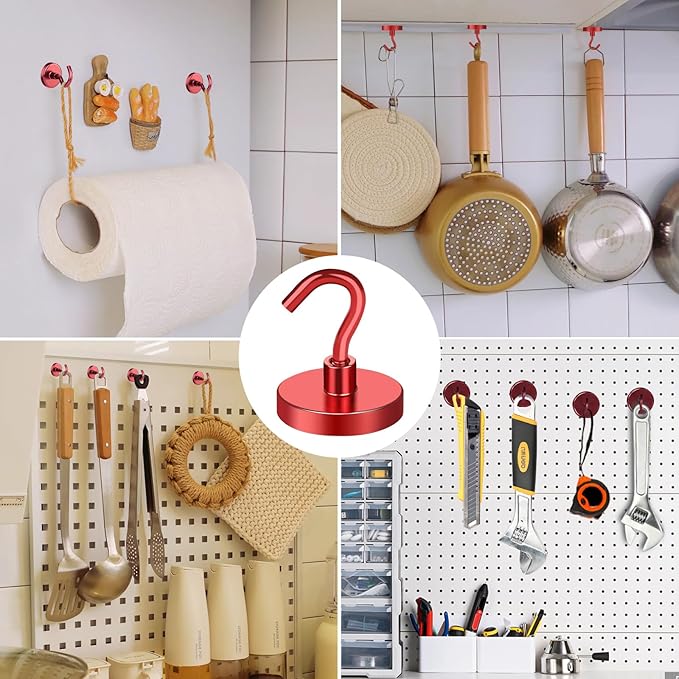 - 【Space Saving】- These magnetic refrigerator hooks are small and don't take up too much space, stable without drilling, so you can quickly and easily organize your home or office and make them more spacious and tidy. Feel free to create your unique house