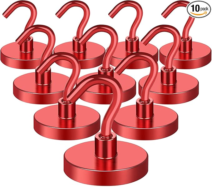 MIKEDE Strong Magnetic Hooks, 110Lbs Heavy Duty Magnetic Hooks for Cruise, Neodymium Earth Magnets with Hooks for Hanging, Super Metal Magnetic Hanger for Grill, Storage (Red,10 Pack)