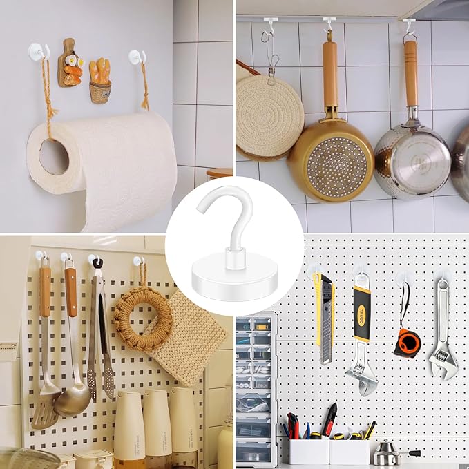 - 【Space Saving】- These magnetic refrigerator hooks are small and don't take up too much space, stable without drilling, so you can quickly and easily organize your home or office and make them more spacious and tidy. Feel free to create your unique house