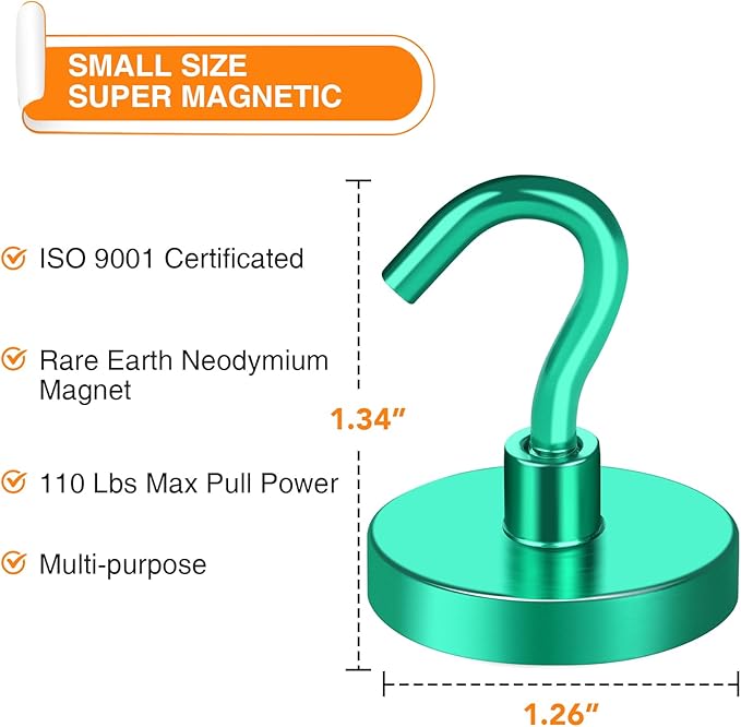 - 【Premium Magnetic Hooks】- Ni+Cu+Ni Triple Layer nickel coating greatly reinforces corrosion resistance. The best coating available, which provides a shiny and rust resistant coated steel cup provides protection for the strong metal magnetic hooks and helps to prevent chipping or cracking, Safe to Use!