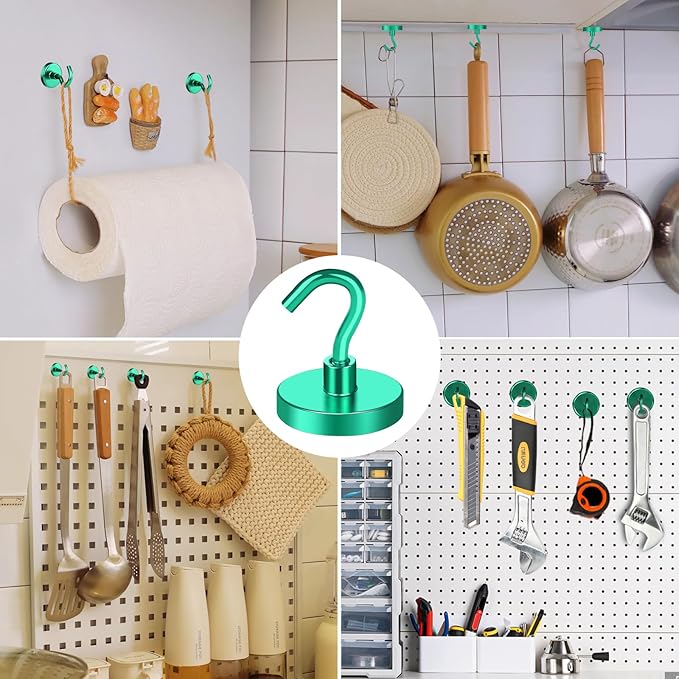 - 【Space Saving】- These magnetic refrigerator hooks are small and don't take up too much space, stable without drilling, so you can quickly and easily organize your home or office and make them more spacious and tidy. Feel free to create your unique house