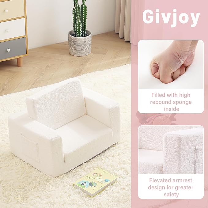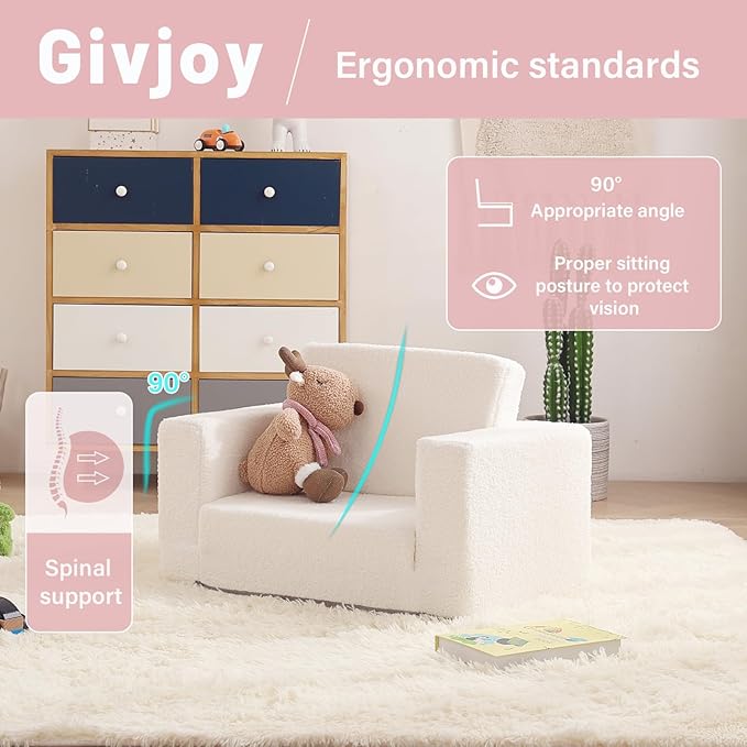 - 【Care Instruction】The 2-in-1 Soft Sherpa kids chair cover is detachable and washable in the machine. But you need to mark each foam before washing for easy re-installation. Thanks to the fabric is soft and resistant to fading, shrinking, the kid couch sofa stays the same as the new one after washing. The foam kids couch will be an attractive sofa!