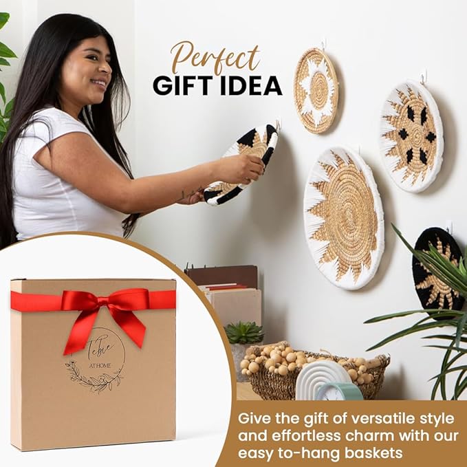 - ๐๐๐ซ๐๐๐๐ญ ๐๐ข๐๐ญ ๐๐๐๐: These woven wall art are handmade by skilled artisans and show both beauty and care. The rattan wall art make great gifts for housewarmings, birthdays, Motherโs Day, Thanksgiving, Christmas, and other special occasions.