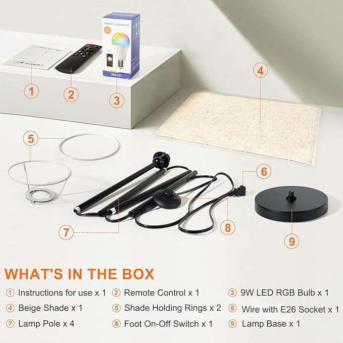 - 【Easy installation 】The tall floor lamp is easy to install—no extra tools are needed. Just follow the instructions to screw in all the parts, and you'll be ready to enjoy customizable lighting! Ideal for gifts for teenage girls.