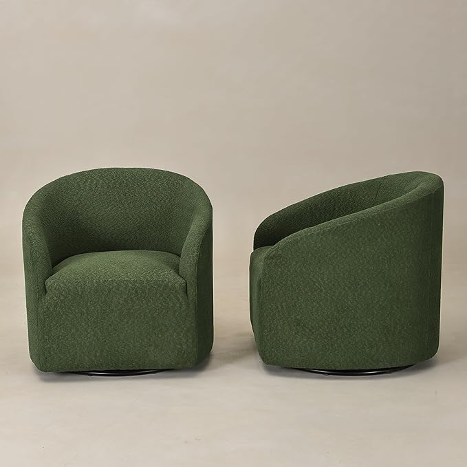 KINWELL 32" Wide Modern Boucle Swivel Barrel Chairs Set of 2, No Assembly Round Upholstered Swivel Accent Armchairs for Living Room, Bedroom (Green)