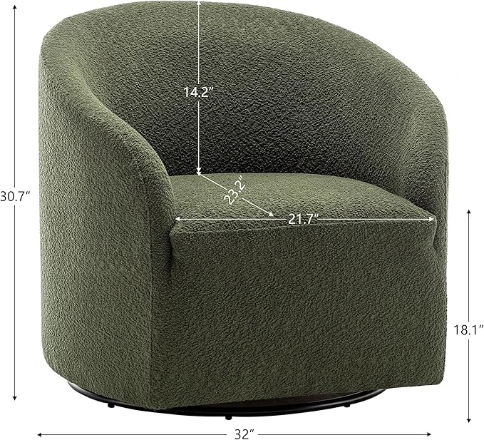 - 32" WIDE SWIVEL BARREL CHAIRS: 32 inches is the most suitable width for the swivel accent chairs to provide you with ample and comfortable seating space. The wider width allows you to sit comfortably without feeling cramped or restricted, giving you freedom of movement.