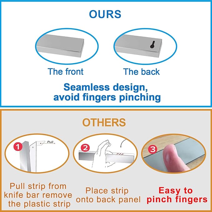 - 【Robust Magnetic Strip】 Our this magnetic knife bar, made from premium 304 stainless steel, with 3 removable hooks, combines the strength of neodymium and ferrite magnets. This ensures a powerful and enduring hold for your knives, with no risk of rust or weakened magnetism, offering lasting kitchen efficiency