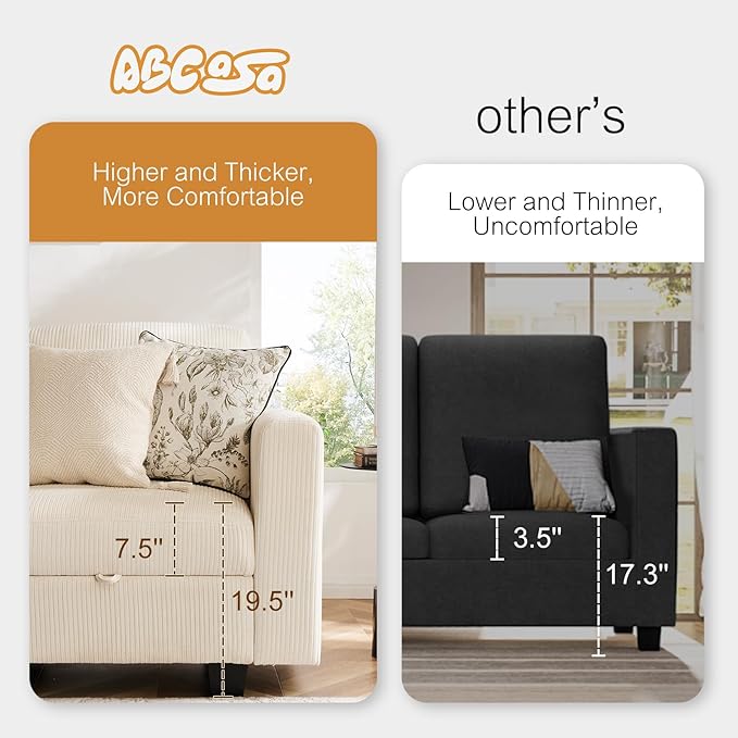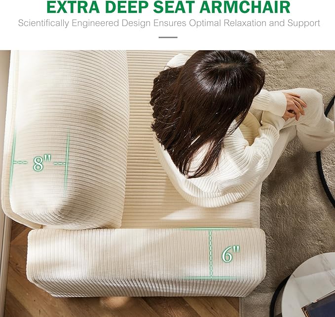 38.5 Oversized Accent Chair with Storage Ivory Corduroy, Single Modern Accent Sofa Chair with Arms for Apartment Living Room (21" Deep Seat)