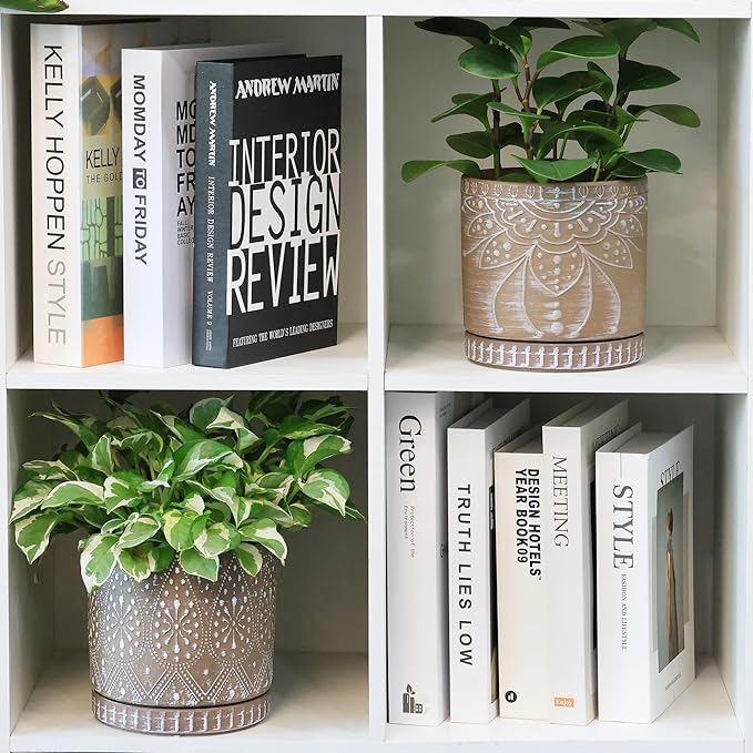 6 Inch Indoor Plant Pots with Drainage Holes and Saucers, Ceramic Planter for Plants, Flower Pot - Set of 2