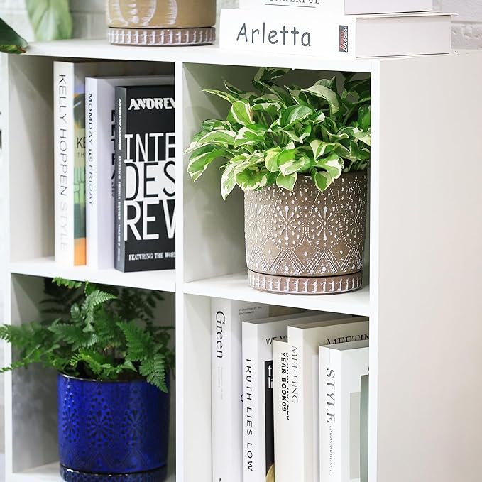 - Size & Package : 6 Inches set of 2. Package: contains 2 ceramic flower pots, 2 ceramic saucers and 2 mesh pads(NOT INCLUDE PLANTS)