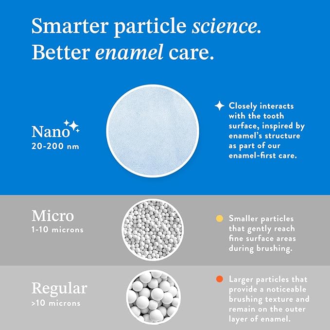 - THAT CLEAN DENTIST FEELING: Say goodbye to harsh bleaching agents. Our nano hydroxyapatite toothpaste gently polishes, leaving you with a glossier, smoother "tooth feel" without causing sensitivity.