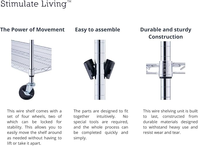 - ★EASY ASSEMBLY★ Our Stimulate Living Wire Shelving is designed with simplicity in mind, making assembly quick and hassle-free. You can easily set it up in no time and start using it immediately.