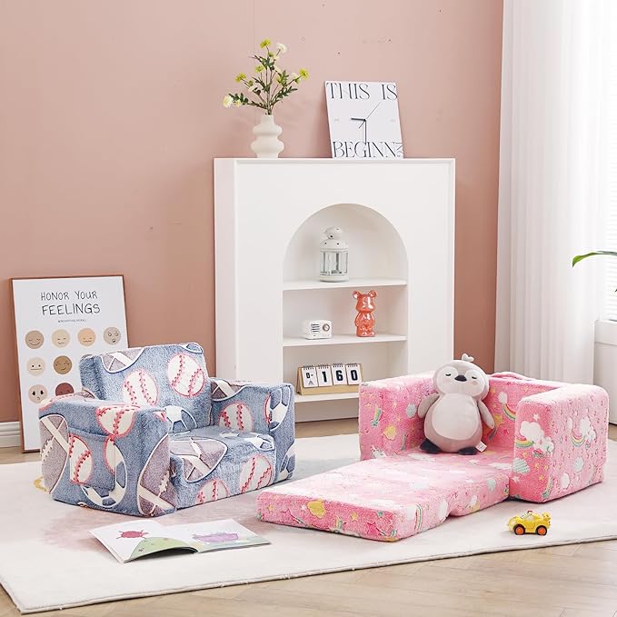 - 【Practical Pocket & Handy Handle】 Thoughtfully designed 2-in-1 kid couch sofa also has convenient pockets for kids to store their favorite story books, dolls or plush toys! Additionally, a practical handle is easy for toddlers to transport this kids fold out couch safely from room to room.