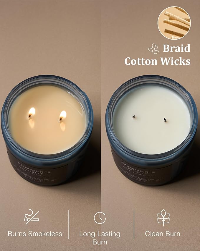 - š³ Clean Consistent & Even Burn - Using 2 American made lead-free cotton wicks for a even burn result. They're cotton flat braid wicks with paper throughout, providing increased rigidity and burn more consistently than 100% cotton wicks. Designed to reduce carbon buildup which leads to black soot.