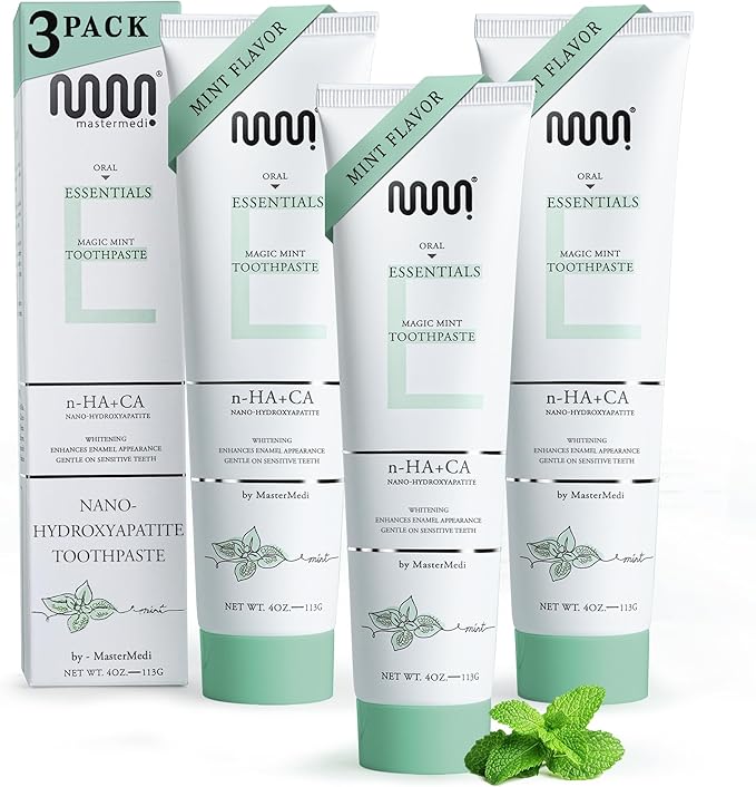 MasterMedi Nano Hydroxyapatite Toothpaste – Fluoride Free, SLS Free, for Sensitive Teeth, Whitening, Enamel Remineralization, Magic Mint, Dentist Recommended, 4 oz (Pack of 3)