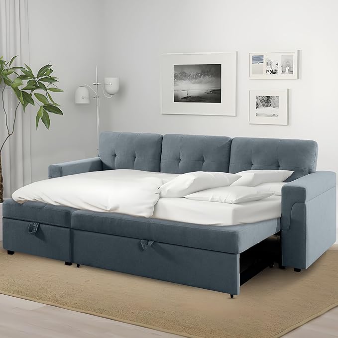 - SAY GOODBYE TO CLUTTER: With a savvy chaise design, you'll enjoy ample storage right in your living area. Keep your space organized without compromising on aesthetics. This pull out couch bed sleeper sofa is a game-changer: