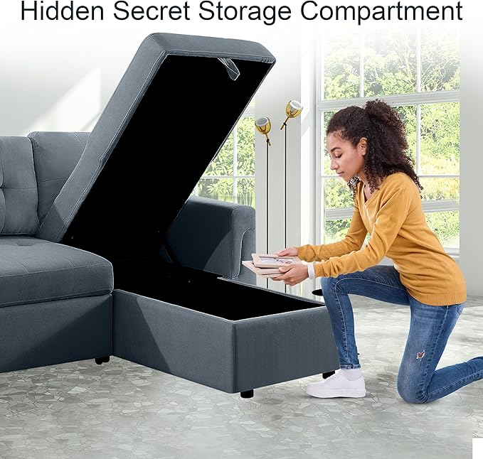 - ASSEMBLY MADE A BREEZE: No more worries: Our sofa bed is engineered for easy setup. Follow our clear instructions, and you'll be enjoying your dream l shape couch in no time. This couch with storage is designed for convenience.