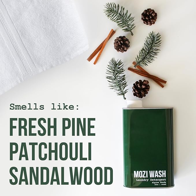 - ALPINE WOODS: Earthy & Bold. A deep, woodsy scent rooted in sandalwood, pine, and patchouli. Grounding, mysterious, and addictive—this bold laundry detergent liquid leaves clothes smelling rich and rugged.