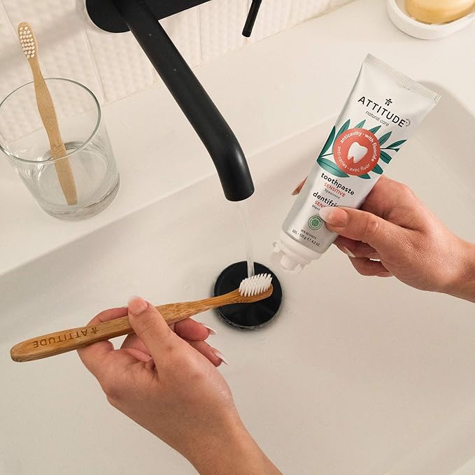 ATTITUDE Toothpaste with Fluoride, Prevents Tooth Decay and Cavities, Vegan, Cruelty-Free and Sugar-Free, Sensitive, Spearmint, 4.2 Oz (Pack of 2)