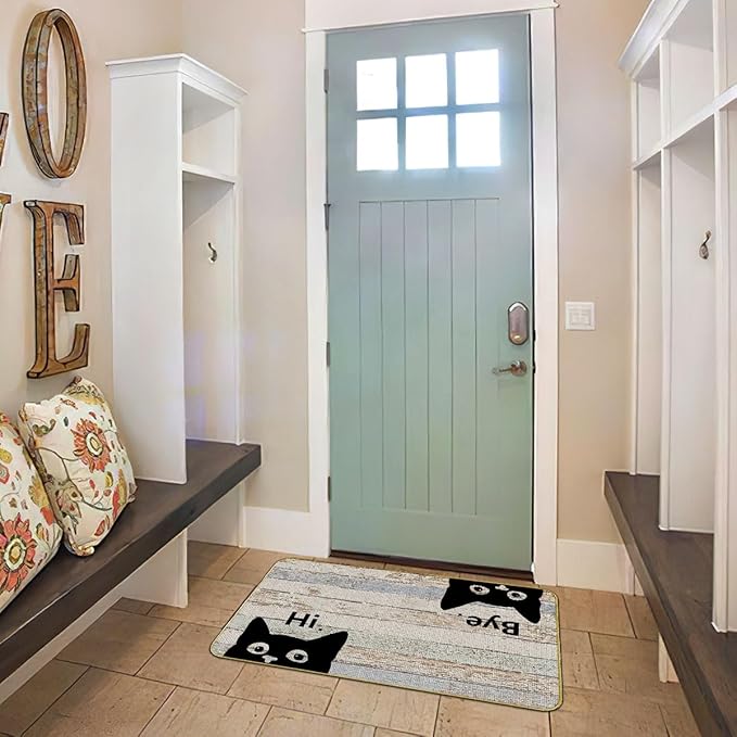 Mingnei Hi Bye Cat Welcome Doormat - Door Mat for Home Kitchen Entrance, Funny Black Cat Lover Floor Mat for Indoor/Outdoor Entryway Rug 30x17 (Grey)