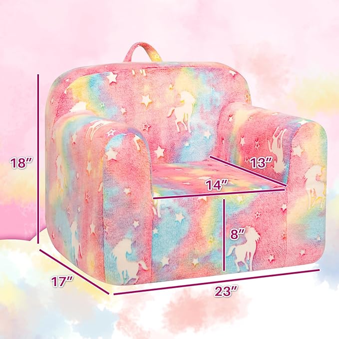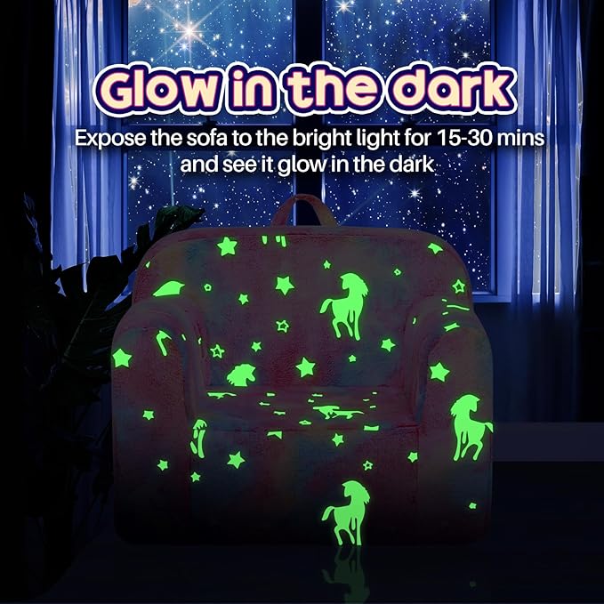 ALIMORDEN Kids Ultra-Soft Snuggle Foam Filled Chair, Cuddly Sherpa Reading Couch for Boys and Girls,Glow-in-The-Dark Unicorn Pattern
