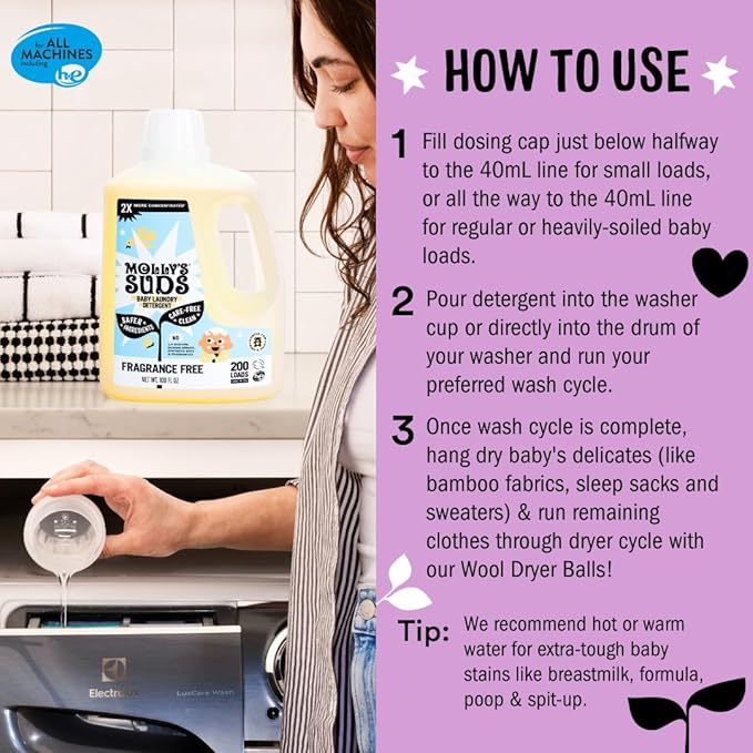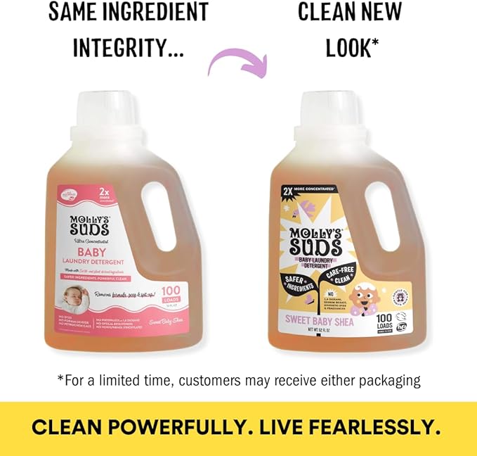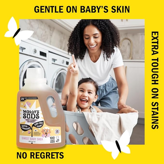 Molly's Suds Baby Liquid Laundry Detergent | Removes Formula, Poop & Spit-Up Stains | Extra Gentle for Infants, Babies, Toddlers (Sweet Baby Shea, 200 Loads)