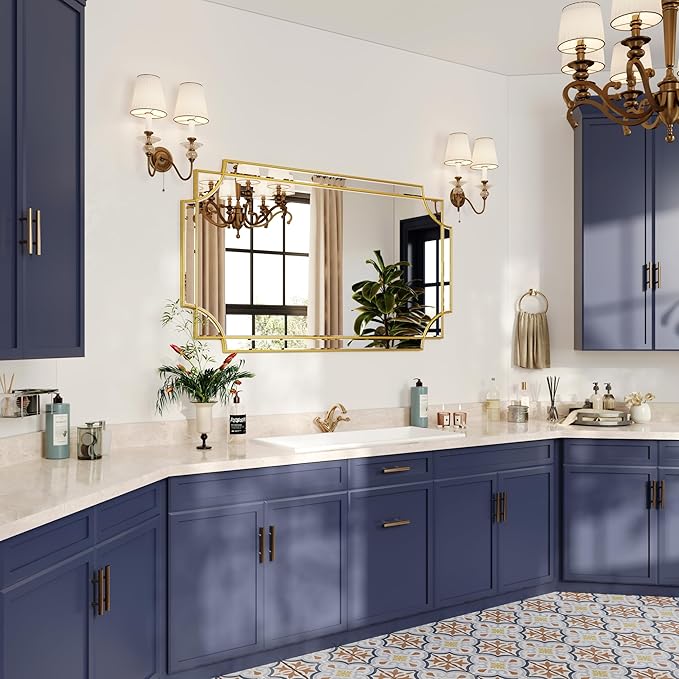 Kelly Miller 28"x50" Large Gold Mirror for Wall, Modern Elegant Decorative Mirror Rectangular Vanity Mirror Beveled for Bathroom Living Room Bedroom Farmhouse Fireplace Entryway Hallway