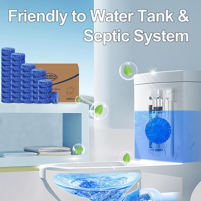 - CONVINIENCE:Use Kiisiiso septic friendly toilet cleaners for inside the bowl and really very easy, just put one tablet blue toilet bowl cleaner in tank,finally fresh, and there is a protective film packaging can protect your hands. It cleans the bathroom and saving precious time and energy for you!