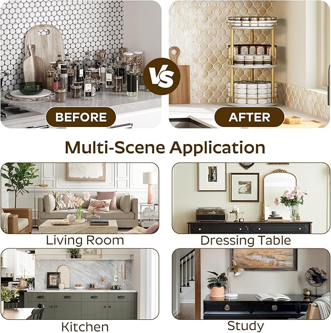 - Crafting Time: Our spice rack comes with all necessary accessories, clear instructions and installation tools. By following the instructions, you can quickly assemble this multifunctional and practical rotating spice organizer right away