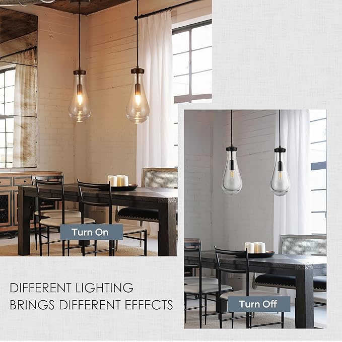 - 【Raindrop Design】This raindrop pendant light features a unique and captivating design that combines modernity with the beauty of nature. The handmade, mouth-blown glass shade resembles raindrops, creating a stunning light effect that enhances any space. Whether you prefer a modern or vintage farmhouse style, these pendant lights effortlessly blend in while illuminating your room with a bright and decorative ambiance.