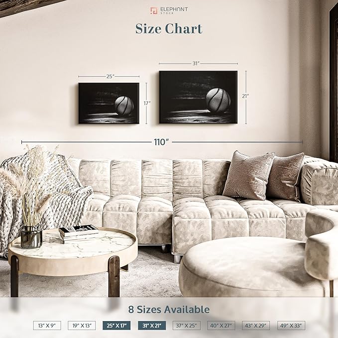 ElephantStock Basketball Wall Art - Horizontal Framed Canvas - 1-Piece Hallway Wall Decor - Photography sports Canvas Print - Black and Gray Decor for Wall - 31" X 21"