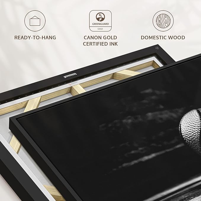 ElephantStock Basketball Wall Art - Horizontal Framed Canvas - 1-Piece Hallway Wall Decor - Photography sports Canvas Print - Black and Gray Decor for Wall - 37" X 25"