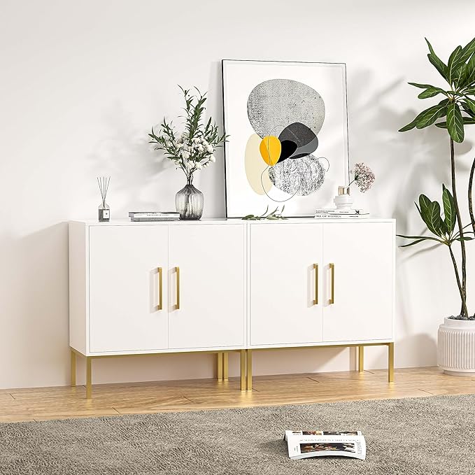 - Smart Storage Solution: Not just a TV stand, this accent cabinet can be ideal for living rooms, nurseries, closets, or entryways. This entertainment center offers generous storage space with 2 modern tv stands. The soft-close hinges ensure quiet and smooth opening and closing of the doors, and you can easily adjust the hinges to ensure a secure closure.