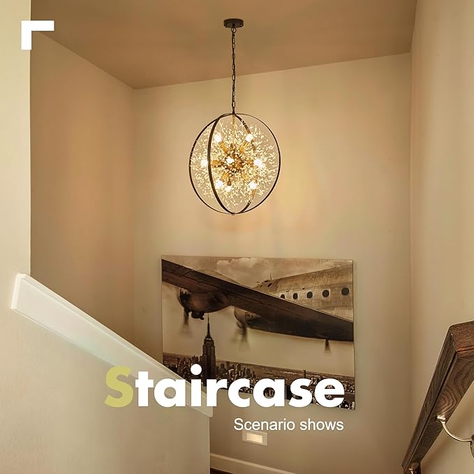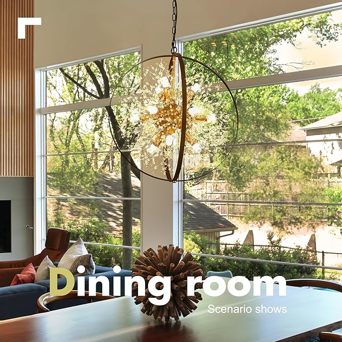 - 【Compatible with Various Bulbs】Sputnik Light Fixture features compatibility with dimmer,12 E12 bulbs base (Switches and Bulbs NOT Included). You can also install LED, Incandescent, or CFL bulbs. The Black and Gold Chandelier will create an enchanting light that illuminates your space with a cozy and warm atmosphere.