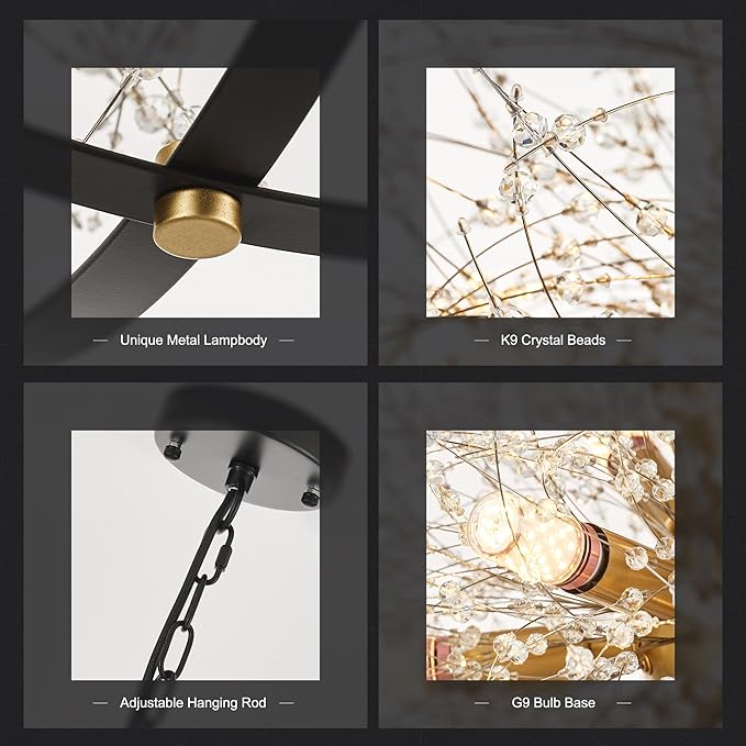 - 【Unique Dandelion Appearance】Our firework crystal chandelier is designed in dandelion shape and matched with high-quality K9 crystal beads, which are shining brightly like stars. Its shape is like a bunch of luminous fireworks. Elegant and gorgeous, it adds beautiful decoration to your bedroom, living room, hallway, kitchen and other places.