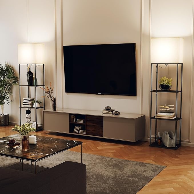 SUNMORY Large Size Floor Lamp with Shelves, 4-Tier Modern Standing Lamp with 3 Color Temperature Bulb, Tall Floor Lamp with Shelf, Corner Display Bookshelf Lamps for Living Room, Bedroom, Office