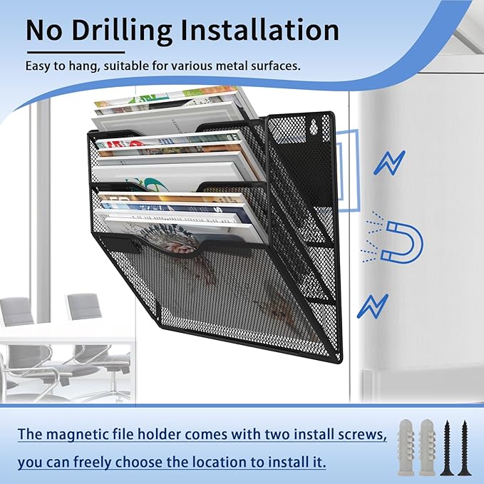 - 【Durable Metal Construction】Crafted from high-quality metal with an attractive mesh wire design, this magnetic hanging file organizer features a durable powder coat finish that is resistant to oxidation and rust. Please exercise caution when removing the product from an iron surface due to its strong magnetic force.