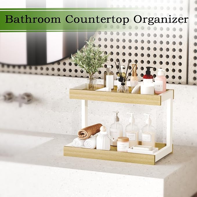 MARTY 2 Tier Spice Rack Organizer for Countertop, 15.8''L Coffee Station/Bathroom Organizer Countertop, Counter Shelf Desktop Storage Organizer for Kitchen, Bedroom, Office