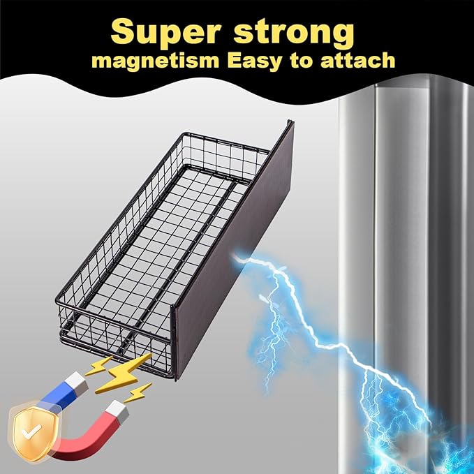 - Wide Applications: The magnetic shelves for side of refrigerator suitable for whiteboard, lockers, iron table legs and more magnetic surfaces. The perfect size won't take up much space, but the mesh magnetic organizer shelf will keep your kictchen and work area neat and organized