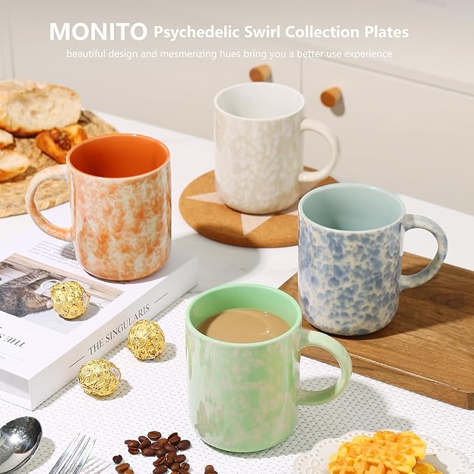 - 【LARGE SIZE & CONVENIENT SET】: With a capacity of 12 OZ, these mugs are the perfect size for everyday use at home or in the office. The set of 4 mugs is convenient for serving guests or for use throughout the day. These mugs are versatile and can be used for a variety of beverages such as coffee, tea, soup, milk, latte, cappuccinos, hot chocolate, cocoa, and more.