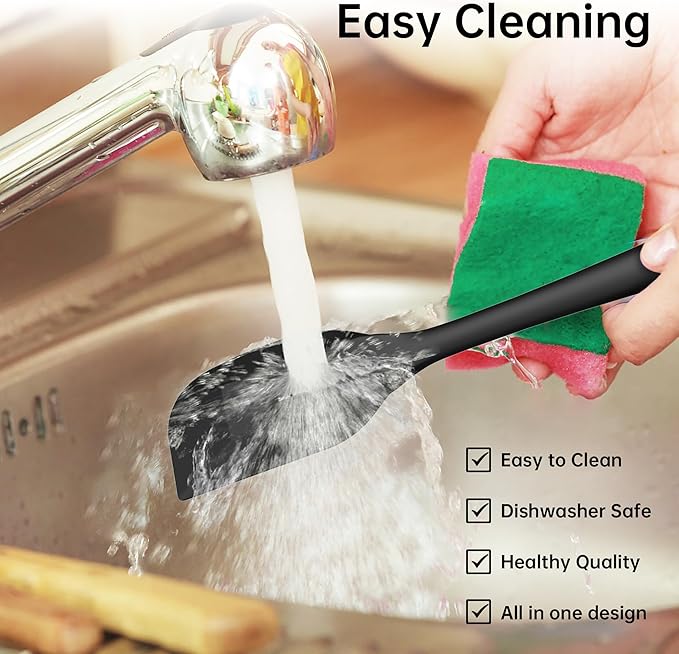 - 【Easy to Clean】: The spatulas for kitchen use in a seamless one-piece shape, comfortable to hold, can be placed in the dishwasher, with a hanging hole design, and can be hung after cleaning.