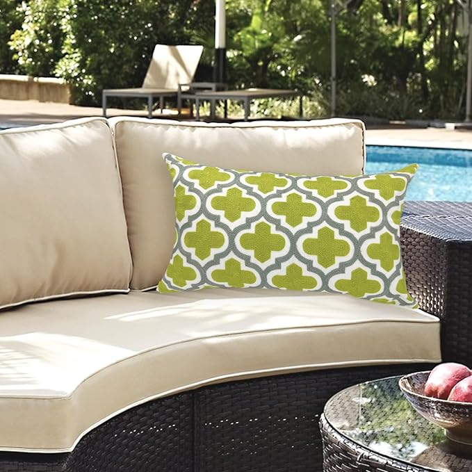 Alysheer Embroidered Lumbar Decorative Throw Pillow Cover 12"x 20", Classic Boho Geometric Embroidery Pattern Cotton Rectangular Cushion Case for Sofa Couch Living Room Bedroom(Green Grey)