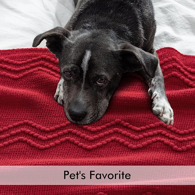 MIULEE Burgundy Red Knitted Throw Blanket for Couch Boho Textured Cozy Woven Blanket with Tassels for Sofa Chair Bed Living Room Acrylic Wave Pattern 50"x60"