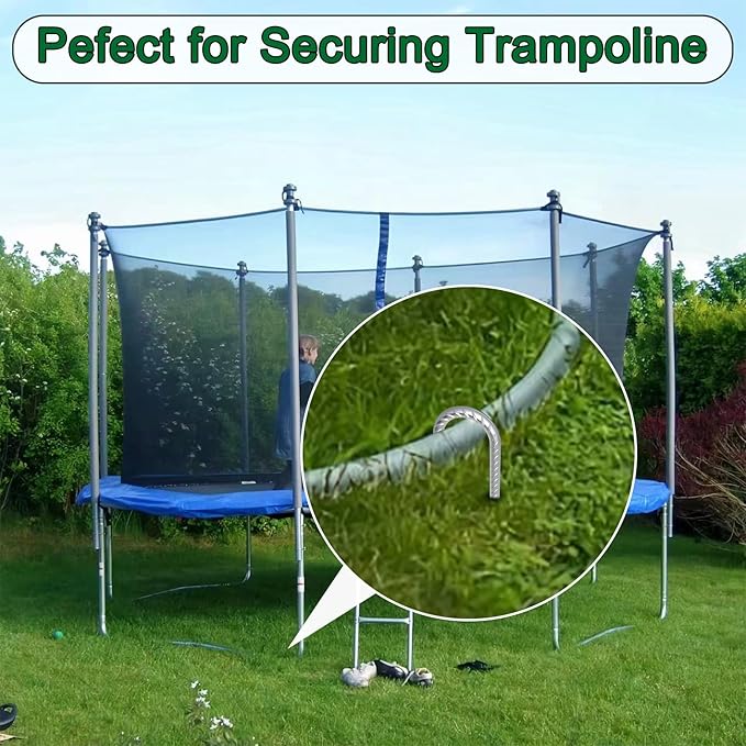- Versatile for Multiple Outdoor Applications: Ideal for a wide variety of outdoor projects, these 12-inch metal stakes are perfect for securing tents, fences, garden nets, trampolines, swing sets, and more. They provide strong anchoring, ensuring stability even during high winds or storms