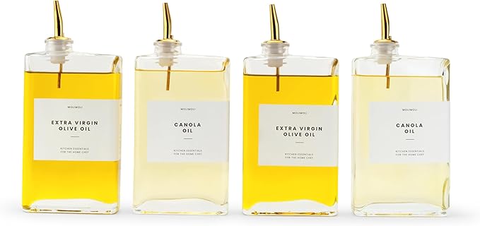 Molimoli Olive Oil Dispenser Bottle for Kitchen, Automatic Pourer, Glass Dispenser for Kitchen, Olive Oil Cruet, | Set of 4 - Gold