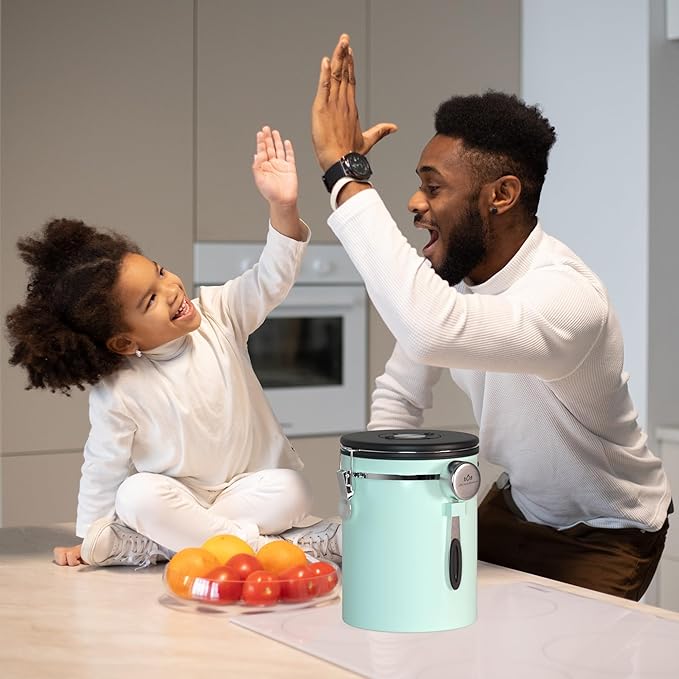 35OZ Coffee Canister for ground coffee with Date Tracker,Mint Green 304 Stainless Steel Kitchen Food Airtight storage container for Coffee Beans or Grounds, Tea, Sugar