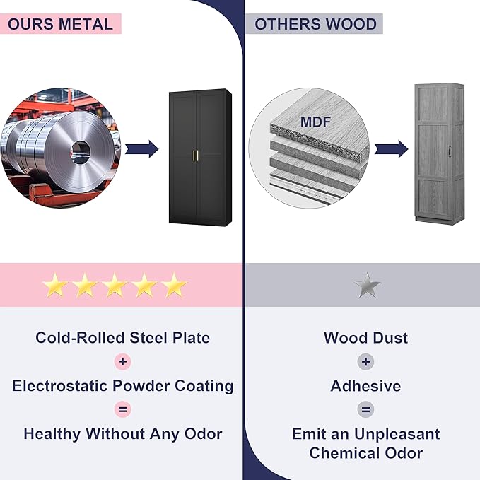 - MATERIAL: The kitchen food storage cabinet is crafted from cold-rolled steel plate(SPCC), ensuring it is sturdy and durable. Steel plates are covered with an environmentally friendly powder coating. Compared to traditional wooden or plastic cabinets, UNICOLY kitchen food storage cabinets are corrosion-resistant, easy to clean, and odourless
