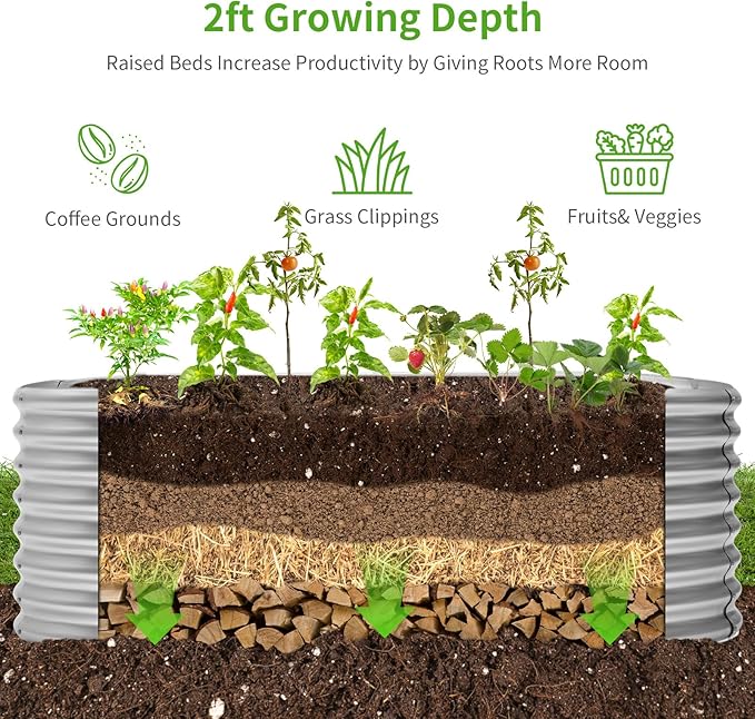 - Large space: 96'(L) x 48 "(W) x 24" (H) metal raised garden bed will provide enough space to grow various vegetables, fruits, flowers.